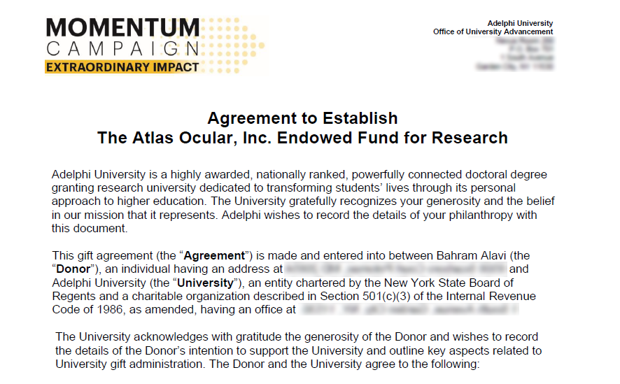 Atlas Ocular has established the Atlas Ocular Endowed Fund for Research at Adelphi University, a new initiative designed to support ongoing scientific discovery and innovation in ocular research.